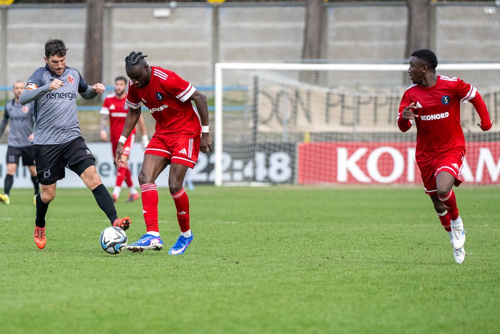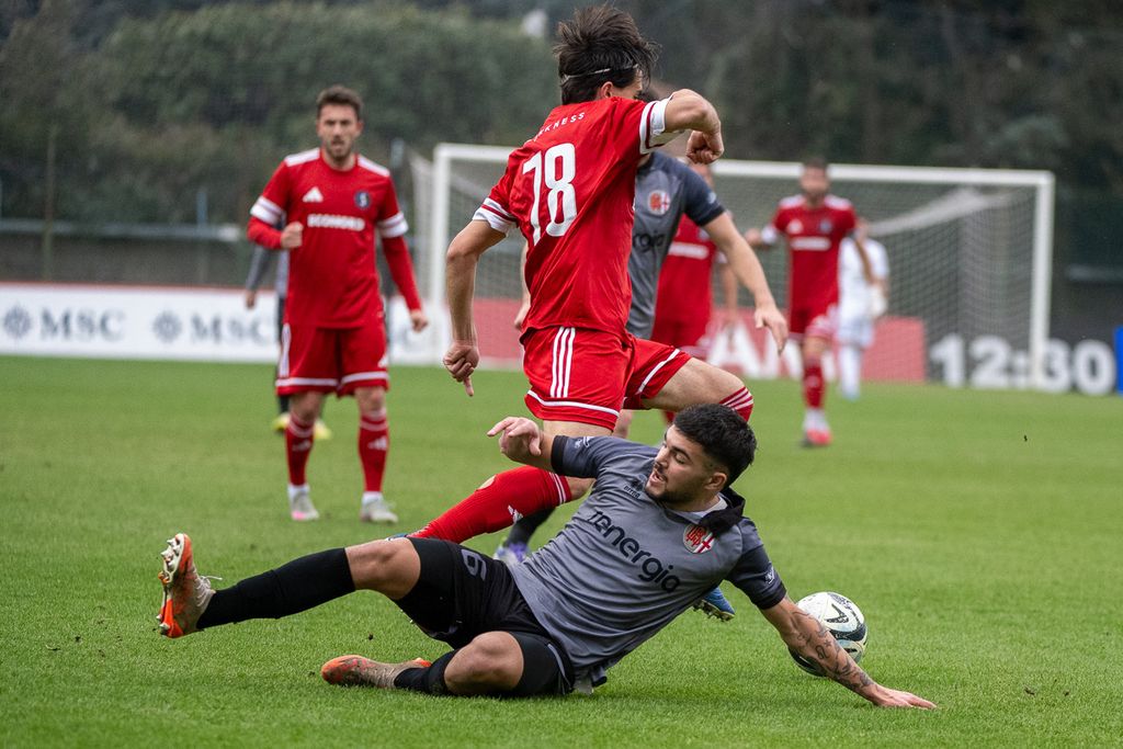 2' Forse ci si attendeva più pubblico da parte grigia: gli ospiti partono con alcuni big come Tos, Diop e Cargiolli in panchina