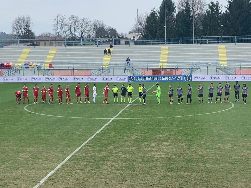 Ci siamo, in un Chinetti che straborda di tifosi e dove è atteso il "muro" grigio (aperte tribuna centrale e laterali, mentre il rettilineo delle gradinate è chiuso per lavori), la Solbiatese cerca l'impresa contro la corazzata piemontese che sta dominando il suo girone con 13 punti sulla seconda.