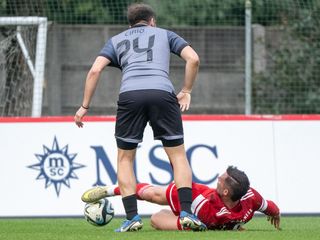 13' Manfrè per Monteiro Barbosa in mezzo, l'attaccante nerazzurro è anticipato di un soffio al momento di battere a rete. Ma c'era anche fuorigioco. È l'azione più pericolosa fin qui