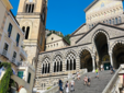Osservata dal mare, diventa più leggibile. I Paesi appaiono come incastri geometrici sospesi, le terrazze agricole come gradini scolpiti nei versanti, la via costiera come una linea sottile ritagliata nella pietra. Dal largo si coglie un sistema costruito contro la gravità, dove nulla è casuale e ogni spazio è stato conquistato. Vietri sul Mare rappresenta la soglia della Costiera. È il punto in cui il paesaggio conserva ancora una certa apertura e la verticalità non è dominante. Le cupole maiolicate riflettono la luce con intensità, le facciate colorate dialogano con il cielo e con il mare. La tradizione della ceramica costituisce l’elemento più evidente: botteghe e laboratori raccontano una continuità artigiana che ha dato al luogo una riconoscibilità internazionale. Andando oltre, la morfologia cambia rapidamente. Partendo via mare, tutto si avvicina. Amalfi appare all’improvviso, raccolta e quasi protetta da “madre natura”. Una parete di case color crema e giallo che sale una sopra l’altra, senza spazi vuoti. La spiaggia è una mezzaluna compatta, il porto un incastro preciso di moli e barche. Sbarcare significa entrare in un sistema verticale. La scalinata del Duomo domina la piazza e segna la direzione: verso l’alto. Ma basta infilarsi in un vicolo per sentire la vera natura del luogo. Archi bassi, muri segnati dal tempo, intonaci che portano tracce di umidità e sale. Le finestre sono ravvicinate, le pareti quasi si sfiorano.