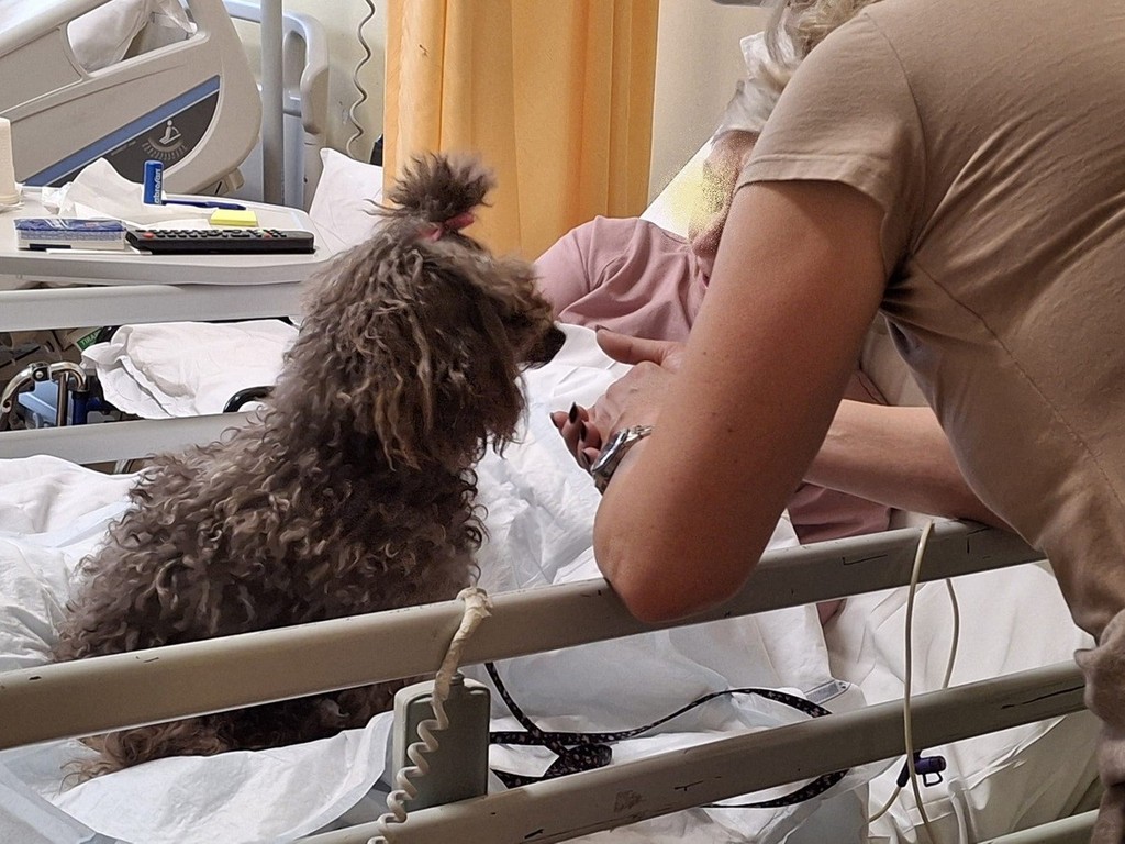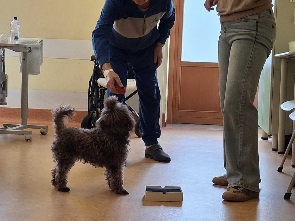 Michela, compagna umana e addestratrice di Ariel, sistema la cagnolina in grembo a una paziente, allettata, nel reparto di Recupero e Riabilitazione funzionale all’ospedale di Busto. La signora, anziana, difficoltà nei movimenti e nella comunicazione verbale, la accoglie volentieri. Accarezza, coccola, accenna a giocare. Ariel, docile, accetta, gradisce, incrocia il suo sguardo con quello della signora. E la paziente si illumina. Si emoziona fino alle lacrime. Che fanno capolino anche agli occhi di chi assiste alla scena. Sorrisi.