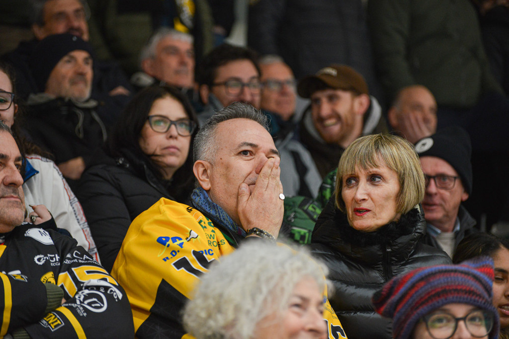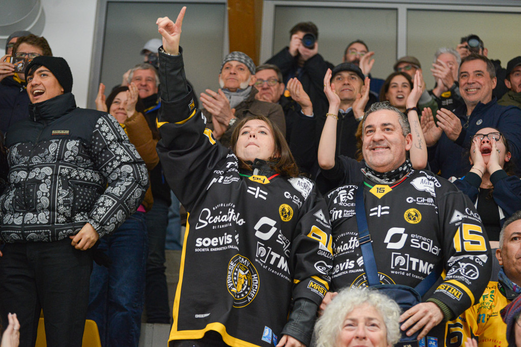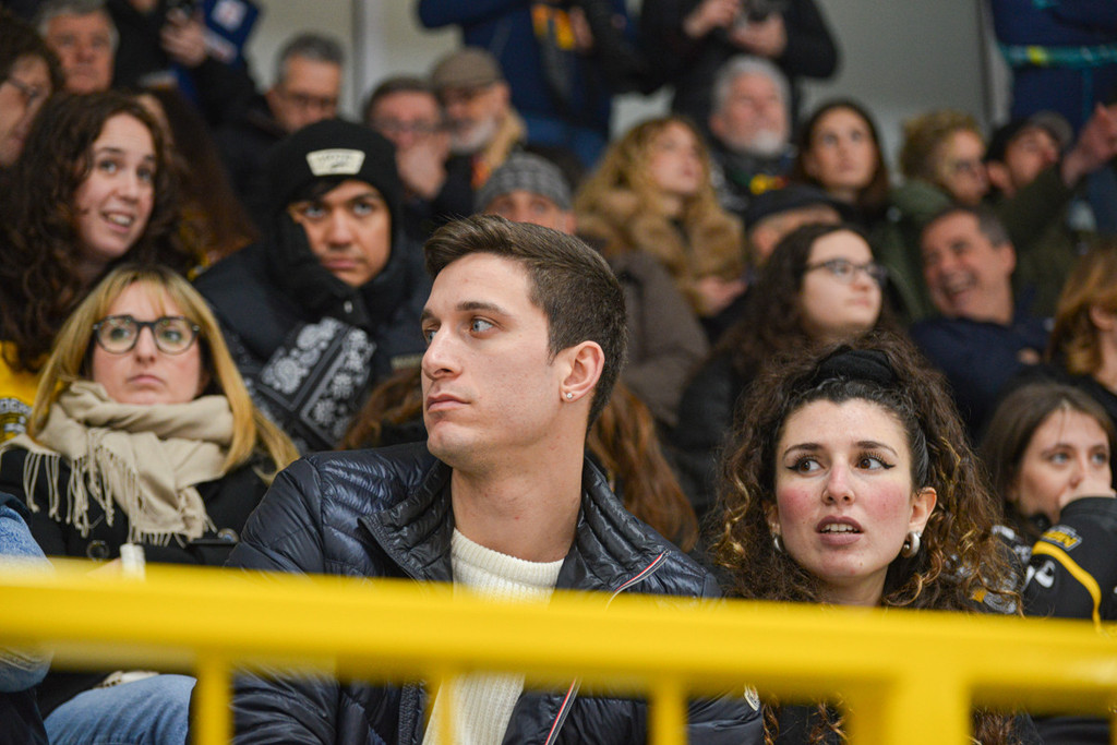 Una gara 3 gestita con mano morbida e troppo tardi dagli arbitri per bloccare l'incendio tra Mastini e Civette ha comunque consegnato il punto del 2-1 ai gialloneri. Gli scatti di Alberto Bernasconi in attesa di gara 4 di domani sera all'Alvise De Toni, quando si entrerà in un'altra bolgia. L'Aosta attende la vincente in semifinale