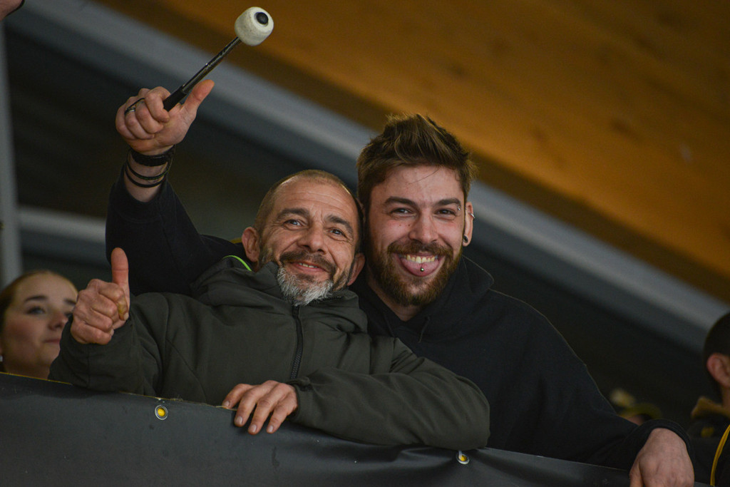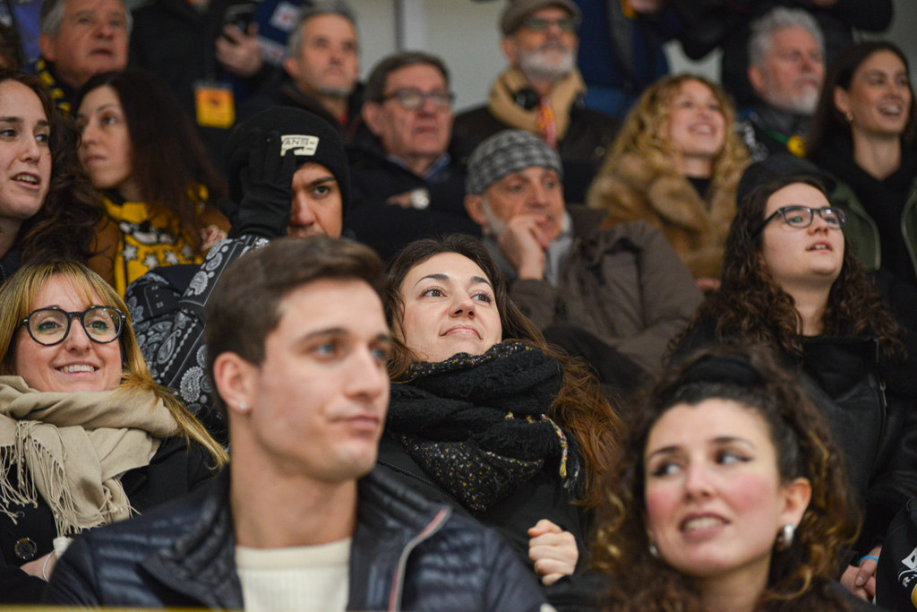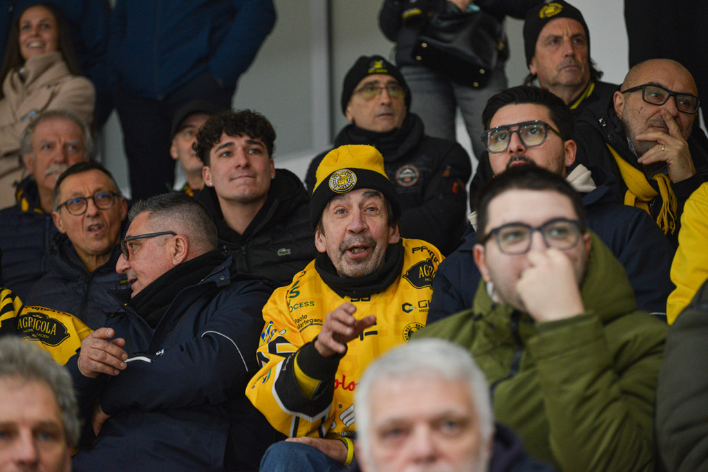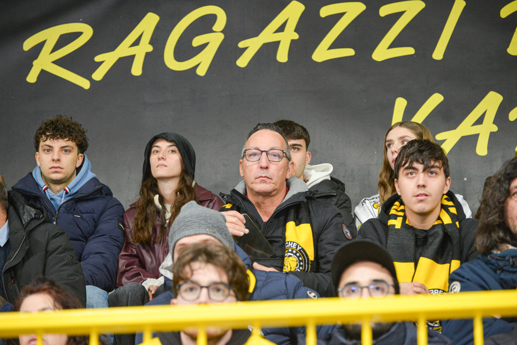 Popolo giallonero inimitabile. Sotto a sinistra Marco e Pippo Matonti, due cuori grandi così per i Mastini (foto Alberto Bernasconi)
