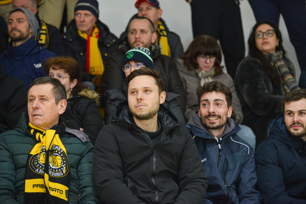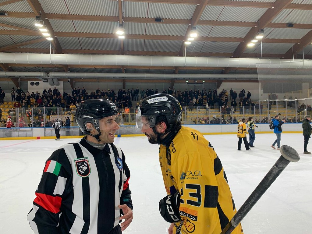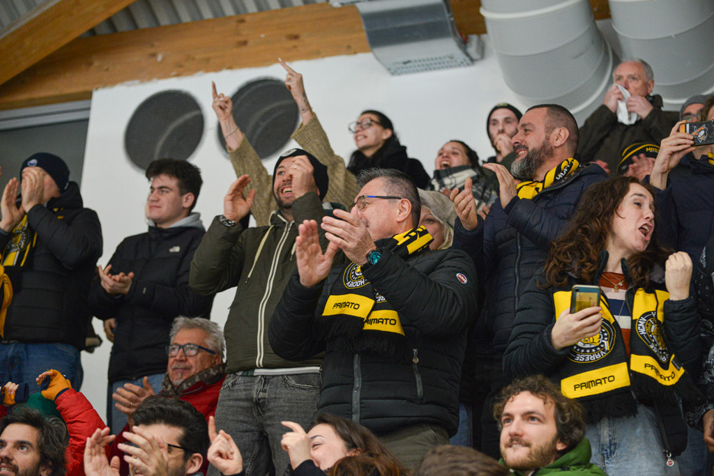 È finita in corrida, come si temeva, e qualcuno avrebbe potuto farsi davvero male. In 900 hanno trattenuto il fiato sullo scontro alla balaustra che ha lasciato a terra Marcello Borghi, poi Mvp per le due reti e la capacità di essere assolutamente decisivo come solo lui sa esserlo (leggi QUI), così come in altri contrasti, tra provocazioni e reazioni senza freni (Matthias Manfroi) anche nei confronti degli arbitri che sono intervenuti con mano morbida e troppo tardi per bloccare l'incendio.