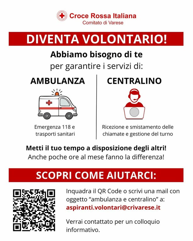 La Croce Rossa Italiana - Comitato di Varese lancia una nuova campagna di ricerca volontari rivolta a chi desidera mettere a disposizione parte del proprio tempo per la comunità.