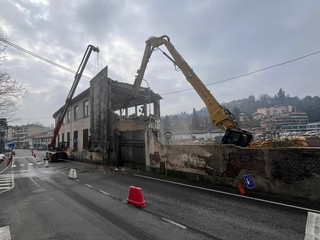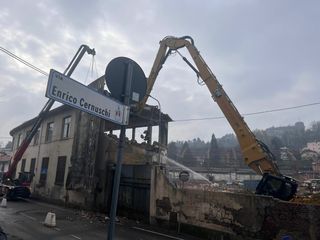 Sono iniziate questa mattina le operazioni di demolizione dell'edificio dell'ex Aermacchi all'angolo tra via Castoldi e via Crispi. Si tratta dell'ultima struttura nell'area in corso di rigenerazione urbana che manca all'appello da quando sono partiti i lavori di smantellamento dello storico complesso industriale in disuso.