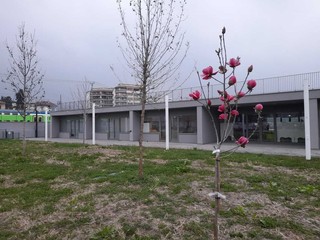 La magnolia all'ingresso del nuovo centro anziani di piazzale Kennedy che verrà inaugurato a giorni e i balli di ieri che hanno accolto la visita del sindaco Galimberti e dell'assessore Molinari