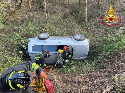 Esce di strada e si ribalta nella scarpata. Momenti di grande paura nel pomeriggio di oggi a Somma Lombardo. Erano quasi le 17.30 quando la conducente di un'auto ha perso il controllo del mezzo finendo fuori strada. Nella sua corsa la macchina è caduta in un dirupo, ribaltandosi.