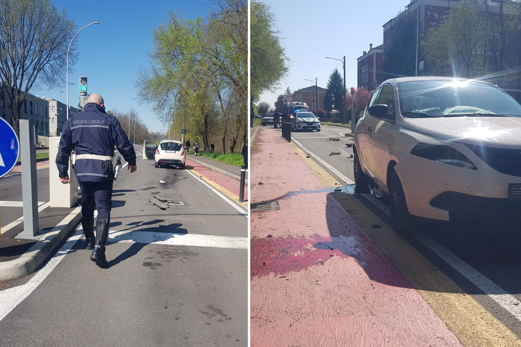 L'impatto, secondo le testimonianze raccolte in loco, potrebbe essere stato causato da una distrazione. La vettura, che stava infilandosi verso la fine della strada aperta al traffico regolare, è andata dritta contro il pilomat che impedisce l'accesso all'area riservata al traffico scolastico, abbattendo completamente il dissuasore e interrompendo la propria marcia pochi metri dopo, a cavallo della pista ciclabile adiacente.