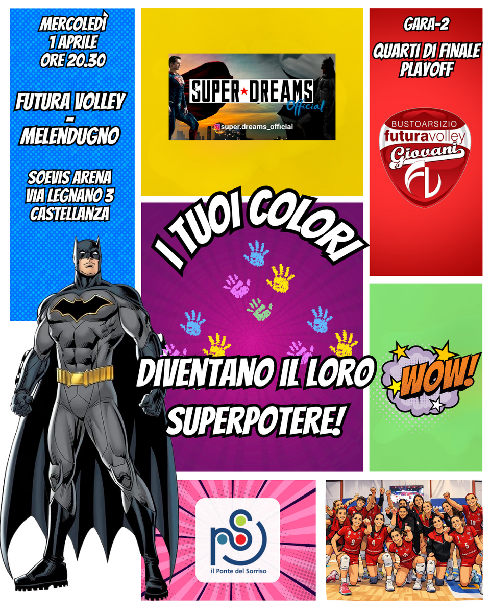 Il primo passo è stato compiuto, lungo una strada che Futura Volley e SuperDreams si augurano possa essere lunga e ricca di soddisfazioni: “I tuoi colori diventano il loro superpotere!”. Si tratta di un’iniziativa benefica di raccolta di materiale da disegno da donare all’Ospedale Filippo del Ponte di Varese.