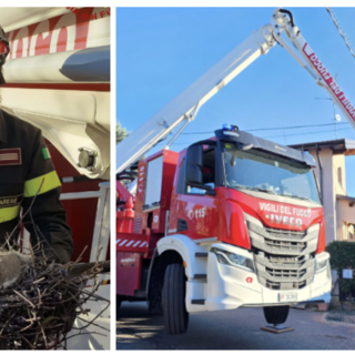 Il vento spezza un palo del luce, i vigili del fuoco trovano un nido e lo mettono in salvo