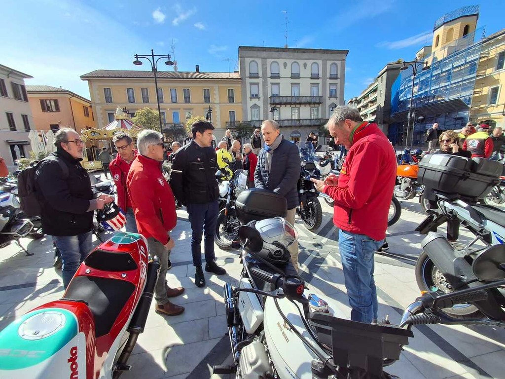 Il presidente del Moto Club, Giorgio Giani, ha richiamato la custodia di valori irrinunciabili, il primo cittadino ha sottolineato la capacità di fare del bene dimostrata dall'associazione unita alla valorizzazione del patrimonio a due ruote, l’assessore allo sport ha ringraziato «…per l’accoglienza nella vostra bella famiglia». Prima che i presenti si concentrassero per la benedizione, applauditissimo il saluto di monsignor Severino Pagani. Richiamata l’aspirazione alla pace, e l'antitesi tra guerra e libertà del viaggio, il sacerdote ha sorriso: «So che andrete in pellegrinaggio ad Assisi. Vi invidio un po’, datemi una Lambretta, vengo con voi».