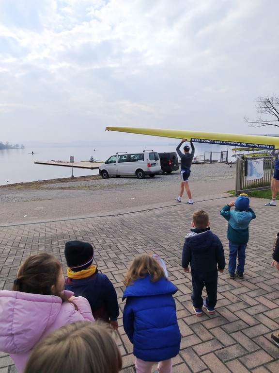 La prima uscita è avvenuta presso la storica Canottieri Gavirate che ha accolto i piccoli aspiranti atleti sulle sponde del lago. La visita alla sede della Società è stata una vera e propria esperienza sensoriale completa.