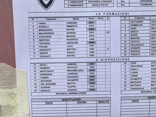 6' GOL VARESE Pari trovato in qualche modo con l'aiuto del cielo: il portiere ospite Sattanino sbaglia a stoppare il pallone, che gli rotola alle spalle, sul lancio lungo sbagliato dalla propria metà campo di Palesi che avrebbe voluto trovare Guerini. Incredibile