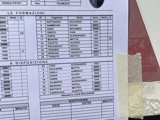 Valenzana (3-5-2): Sattanino; Saidi, Venneri, Ciletta; Borgna, Palazzolo, Greco, Toniato (Carnovale 23' st), Sammouni; Doria (Ciliberto 33' st), Montini (Lusha 25' st). A disp.: Losa, Ceccarini, Chelli, Torre, Massaro, Bettista. All. Luca Pellegrini