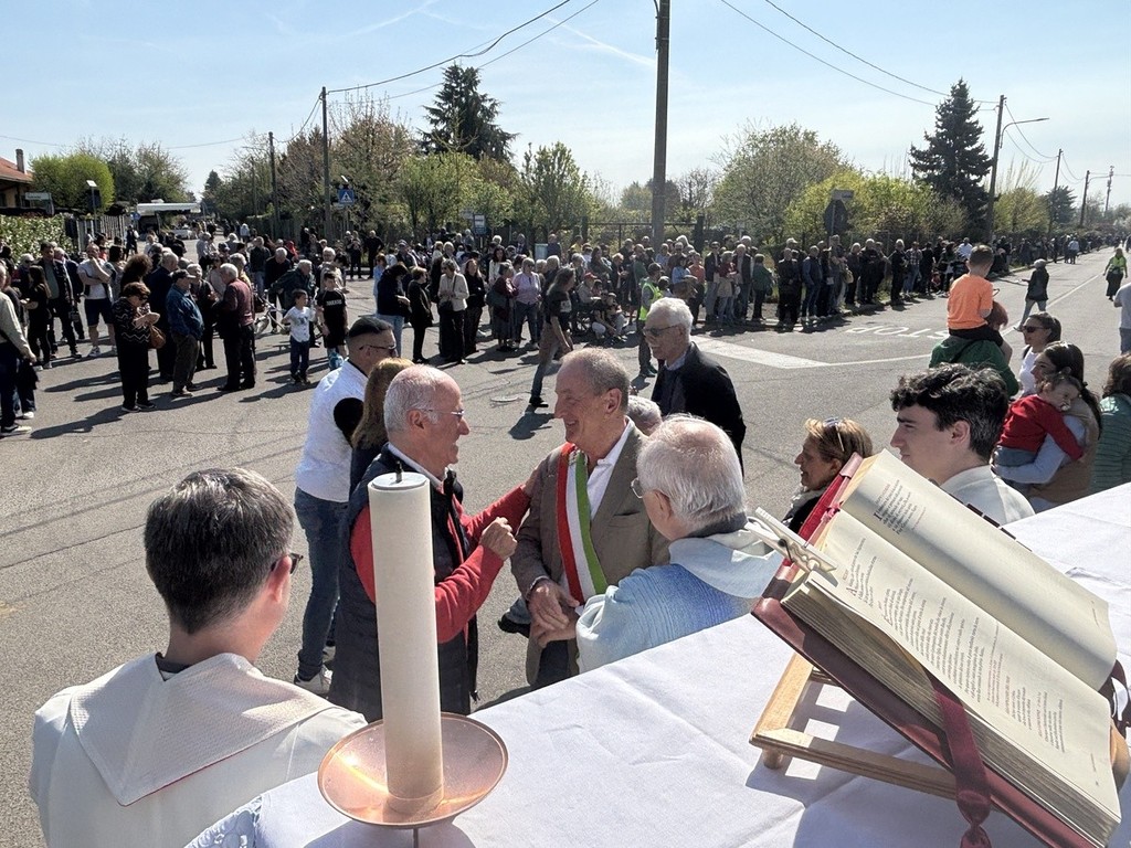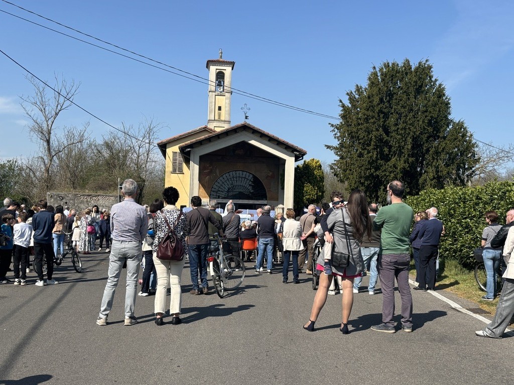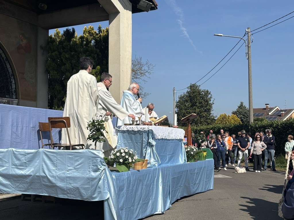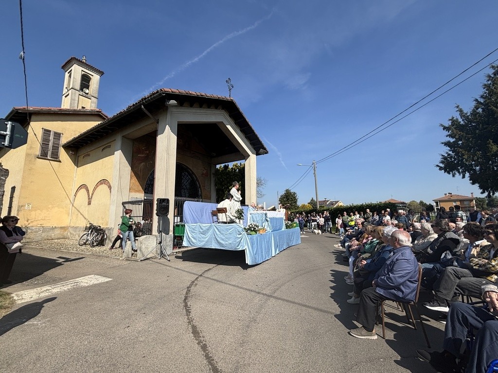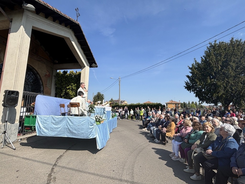Oggi però era il clou, il via alla festa e alla primavera, come gridava anche il cielo. Una folla si è radunata alla chiesa della Madonna in Veroncora per la messa, celebrata da monsignor Severino Pagani e da don Gaudenzio Santambrogio. In prima fila il sindaco Emanuele Antonelli, la presidente del consiglio Laura Rogora, i consiglieri delegati (rispettivamente al Verde e al Commercio) Orazio Tallarida e Paolo Geminiani, il capogruppo della Lega in consiglio Simone Orsi. Durante il rito si è ricordato che la riscossa della sagra avvenne con monsignor Claudio Livetti, che ci ha sempre creduto. Un'antica tradizione doveva rinascere in tutto il suo valore, il pensiero correva a quei bustocchi tra le due guerre che portavano le uova sode alla Veroncora per unirvi l'insalata.