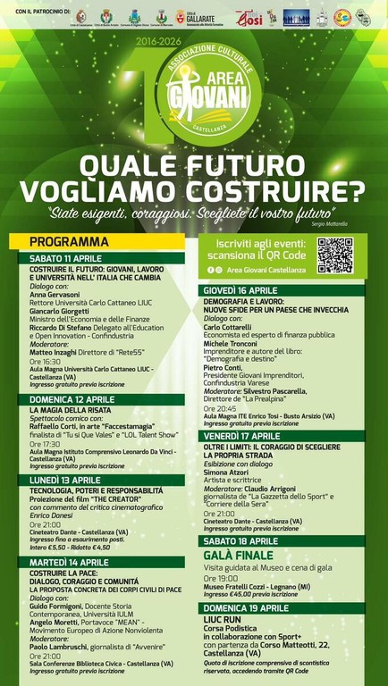 Quella passione negli anni è diventata una realtà radicata a Castellanza e in tutto il territorio, e per questo abbiamo voluto celebrare questa ricorrenza con una settimana in cui fermarci e riflettere, creando uno spazio aperto in cui confrontarci e riflettere, prendendo spunto dalle parole del Presidente Sergio Matterella “Quale futuro vogliamo costruire? Siate esigenti, coraggiosi. Scegliete il vostro futuro”».
