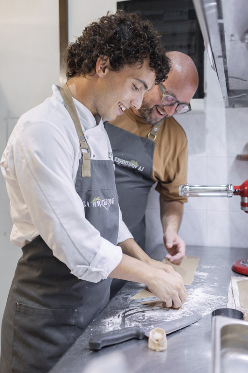 Quattro anni de La Vinotheque di via Sant’Antonio, simbolo di Casbeno, quartiere identitario ancora aperto ai sogni dei giovani. Lo era, e in fondo lo è ancora, Giorgio Nascimbene, il quale, stufo di esperienze lavorative precedenti, all’inizio di questa storia individua una piccola occasione vicino a casa sua e come ultimo atto, a mo’ di liquidazione dal vecchio ristorante gestito in società, si porta via anche il giovanissimo Matteo Mascarin, un ventenne folgorato sulla strada della cucina, casbenatt di origine controllata e protetta. Erano in due, oggi sono in quattro (si sono aggiunti nel tempo Erika Fant, un’interior designer, e Stefano Colombo, sommelier), sono partiti con soli quattro giorni d’apertura alla settimana, adesso sono arrivati a sette e - dopo aver acquisito anche il ristorante My Ramen di via Crispi - sono pronti a raddoppiare l’offerta proprio su Casbeno.
