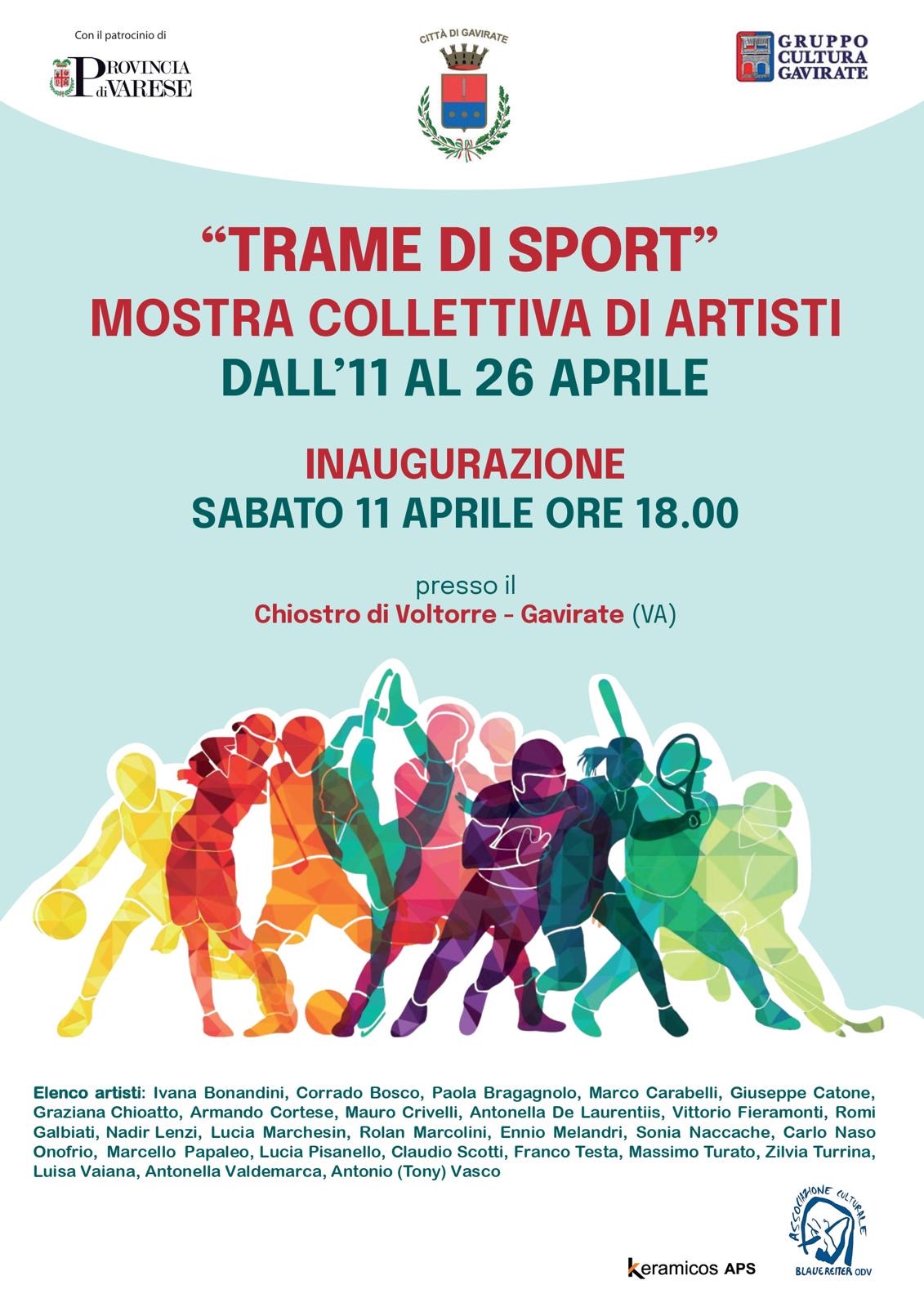 Lo sport non è solo fatica e cronometro, ma anche armonia, ritmo e bellezza. È questo il filo conduttore di "Trame di Sport", la nuova mostra collettiva che verrà inaugurata sabato 11 aprile alle ore 18.00 nella splendida cornice del Chiostro di Voltorre.