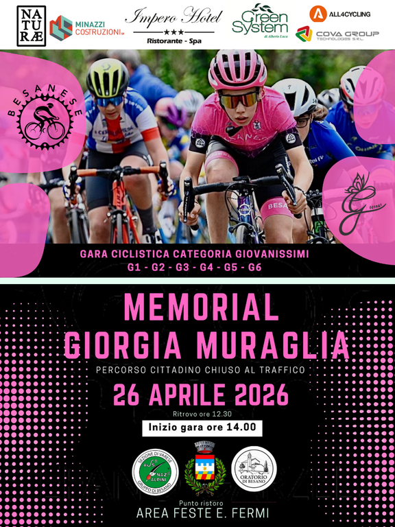 Tradizione, sport e memoria si intrecciano sulle strade della Valceresio. Il prossimo 26 aprile 2026, Besano ospiterà una delle tappe più attese del calendario ciclistico regionale: il "Trofeo Besanese - Memorial Giorgia Muraglia".