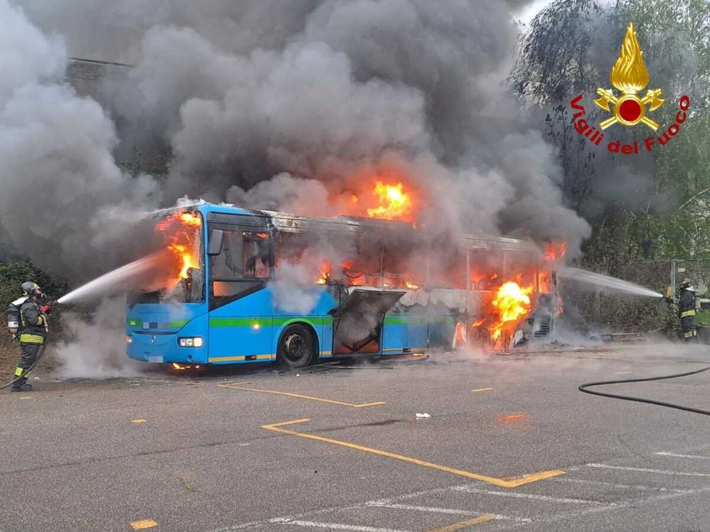 FOTO. Autobus distrutto dalle fiamme: mattinata di paura a Castellanza