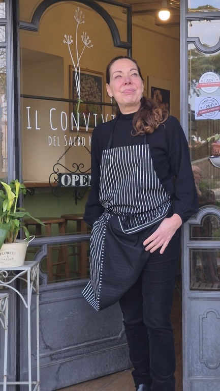 «Sono nata a Legnano ma vivo da tempo a Tradate, avevo capito che i tempi cambiavano, in azienda arrivavano i giovani e avevo voglia di avviare un nuovo percorso. Un giorno la proprietaria del “Convivio”, il nome era già quello, mi dice di voler cedere l’attività, che allora consisteva soltanto nell’asporto. Non ci ho pensato più di tanto e l’ho rilevata, e proprio nel periodo del lockdown ero qui a ridipingere i muri e a preparare il locale, ampliandolo con la saletta e l’accesso al balcone. Ho rischiato, certo, eravamo in pieno covid, ma grazie alla mia esperienza manageriale so fare bene i conti e ce l’ho fatta», racconta Daniela, che ha arredato il locale con dipinti di Manuela Vasconi e vecchie fotografie del Sacro Monte e della funicolare.