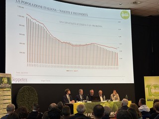 "Demografia e lavoro, nuove sfide per un Paese che invecchia" era il titolo del dibattito. E la partenza è proprio la demografia, con la meticolosa ricostruzione di Michele Tronconi, che mostra una mappa in tela (per deformazione professionale, scherza) e una serie di Implacabile slide. Si tocca l'apice nella storia italiana e poi si scende inesorabilmente con le nascite, fino al 1995 anno in cui l'Italia è il primo Paese occidentale con una media di 1,19 figli per donna: «Da lì non ci siamo più risollevati sotto l'1,5, è la trappola demografica». Con tutte le conseguenze del caso, efficace l'immagine delle due code all'Inps: chi versa i contributi, chi prende la pensione, la prima si assottiglia anno dopo anno al contrario della seconda. Ma attenzione: «Non è con l'egoismo tra generazioni che risolviamo i problemi». Tronconi parla anche dell'importanza dell'immigrazione, quella di qualità, con persone che hanno studiato l'italiano, non sono di passaggio in questo Paese.