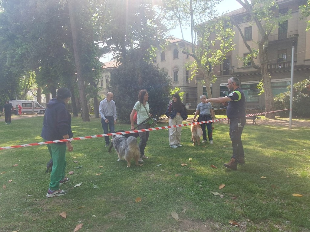 È stato ancora una volta l’ululato del comico Stefano Chiodaroli e dei suoi splendidi pastori tedeschi a dare il via alla Camminata a sei zampe. Un centinaio gli iscritti alla passeggiata di due chilometri e mezzo per il centro di Busto Arsizio con il proprio cane al guinzaglio, tenutasi nel pomeriggio di oggi, domenica 19 aprile, con partenza dal parco Cossetto di via Ugo Foscolo.