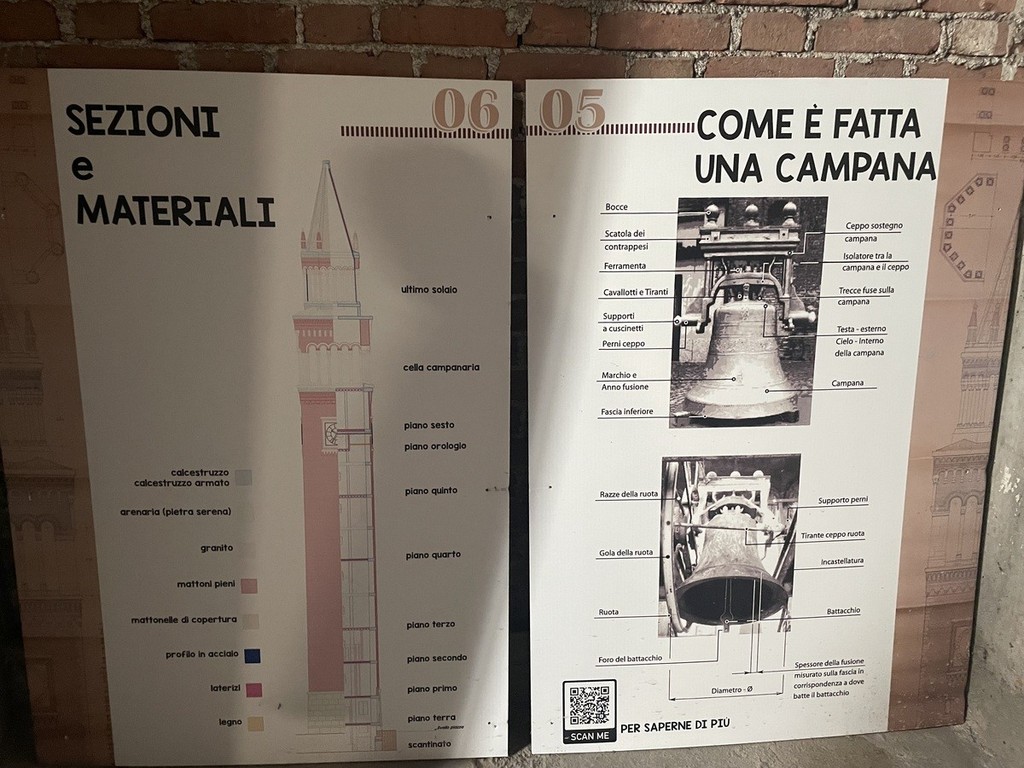 Anche le otto campane, per un peso di circa 120 quintali, furono smontate e restaurate. La gabbia metallica venne ripristinata e aggiornata con materiali più leggeri, per garantire una migliore durata nel tempo. Contestualmente, fu rifatto anche il sistema parafulmine.