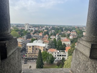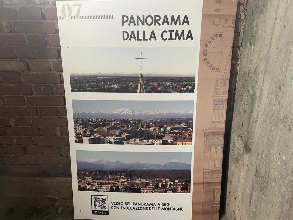 Dopo aver affrontato i 242 gradini, la ricompensa è straordinaria. Dalla cima del campanile si apre un panorama che abbraccia alcuni dei simboli più suggestivi del territorio lombardo. Nelle giornate limpide si può scorgere il profilo del Duomo di Milano, mentre all’orizzonte si stagliano le cime del Monte Rosa, della Grigna e della Grignetta.