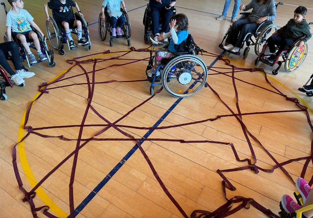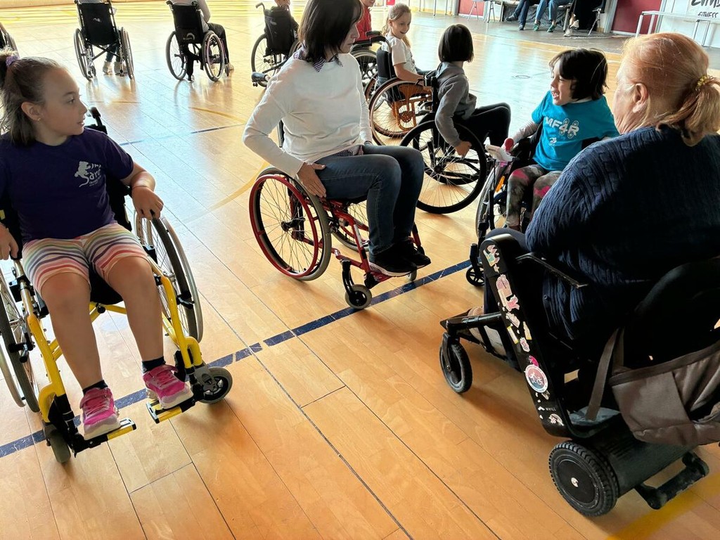 Poi, la teoria ha lasciato il posto alla pratica. In palestra, i compagni di classe, le insegnanti e persino il personale scolastico si sono messi in gioco: tutti seduti su una carrozzina per conquistare lo spazio, e imparare ad aiutarsi a vicenda attraverso percorsi e giochi di squadra.