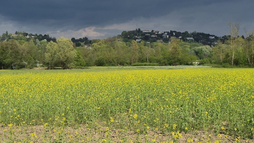 A metà strada il punto panoramico, con una infinita successione di alberi e campagna e, più lontano, con un “occhio” di lago sullo sfondo. Se non si è pratici della zona, la sorpresa, una volta arrivati in pianura, è grande. Campi di colza fioriti a perdita d’occhio, e siamo a pochi minuti dalla città, il campetto di volo per gli aeromodelli, poi la pista si fa sterrata e dopo qualche decina di metri si sbuca a Capolago, a metà della via del Porticciolo, e si può scegliere: o ritornare verso Varese salendo la Cartabbia, oppure, se si ha fiato e voglia, proseguire sulla Sp1 verso Schiranna e poi alla rotonda girare a destra, e prendere per Mustonate.