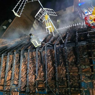 FOTO. Serata di fuoco ad Albizzate: tetto distrutto da un incendio