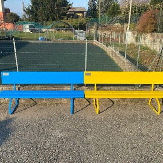 Alla scuola primaria di Brenta le panchine colorate di giallo e azzurro